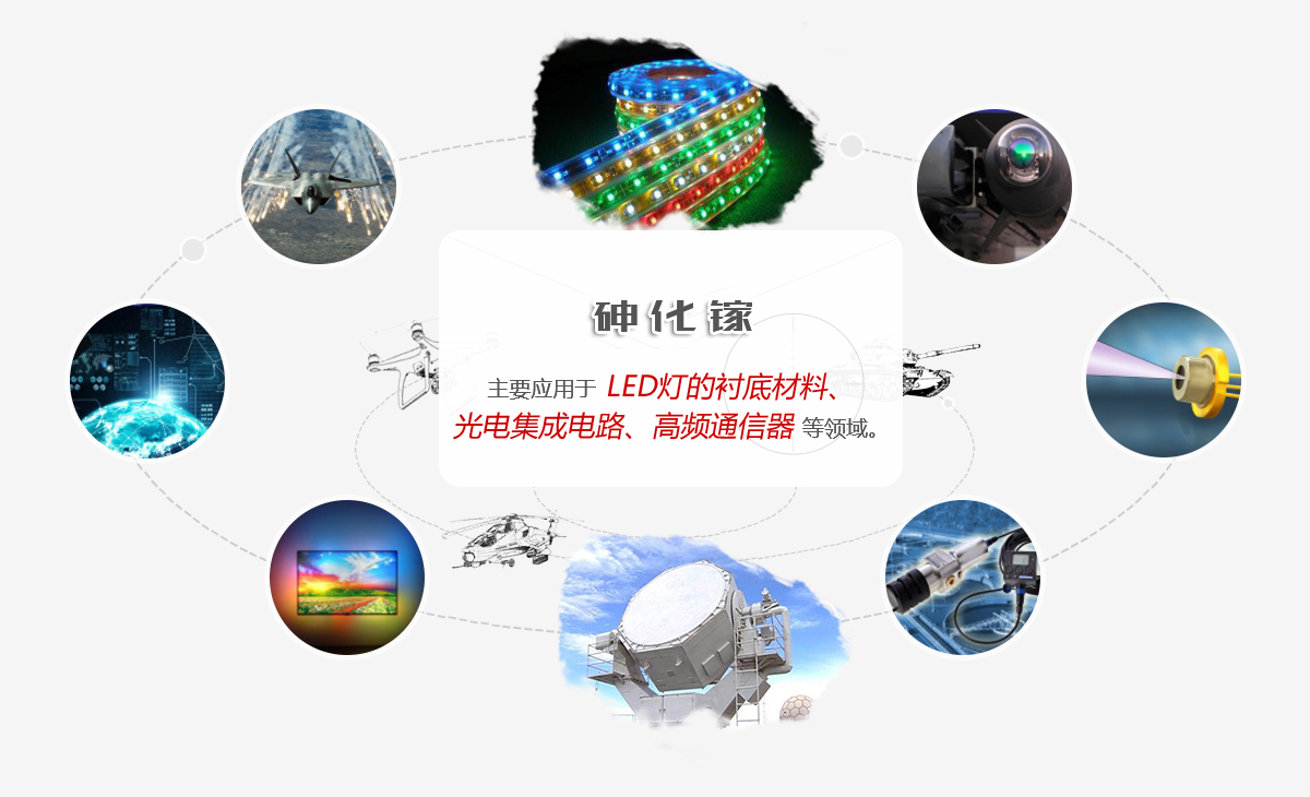 云南鍺業(yè)生產(chǎn)的2-6英寸半導(dǎo)體級以及半絕緣體砷化鎵晶體和襯底被廣泛應(yīng)用于納米級半導(dǎo)體集成電路以及LED通用照明領(lǐng)域。 此外,公司還成功投產(chǎn)了具有國際先進(jìn)水平的2-4英寸磷化銦襯底生產(chǎn)線。產(chǎn)品被廣泛應(yīng)用于微波振蕩器與放大器、光纖通訊率放大器等領(lǐng)域。